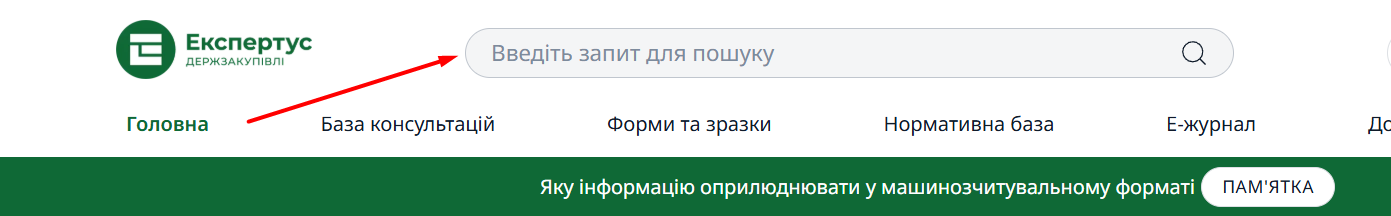 Пошуковий рядок є вгорі будь-якої сторінки Експертус Держзакупівлі: