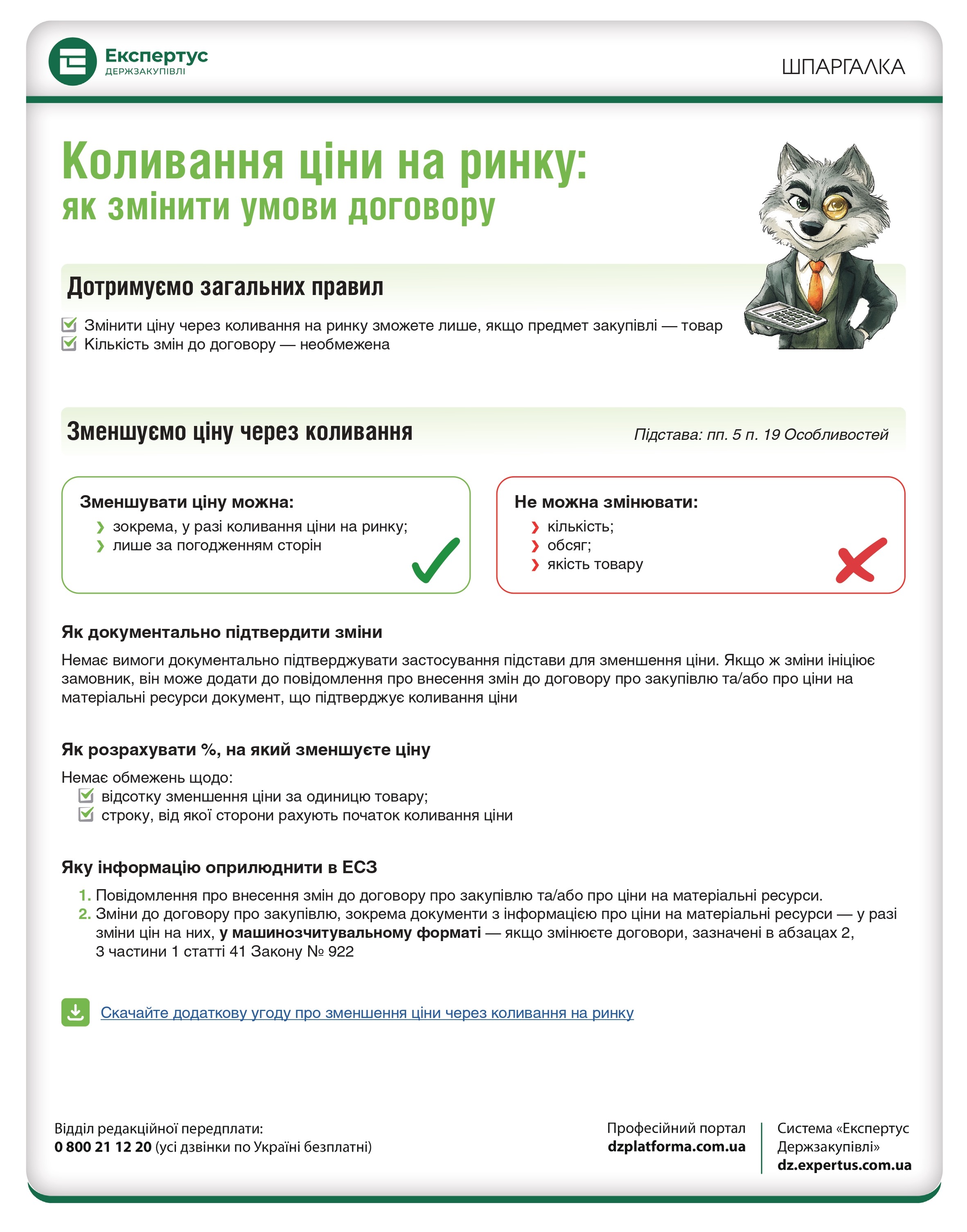 Додаткова угода про зменшення ціни договору, у тому числі через коливання ціни на ринку