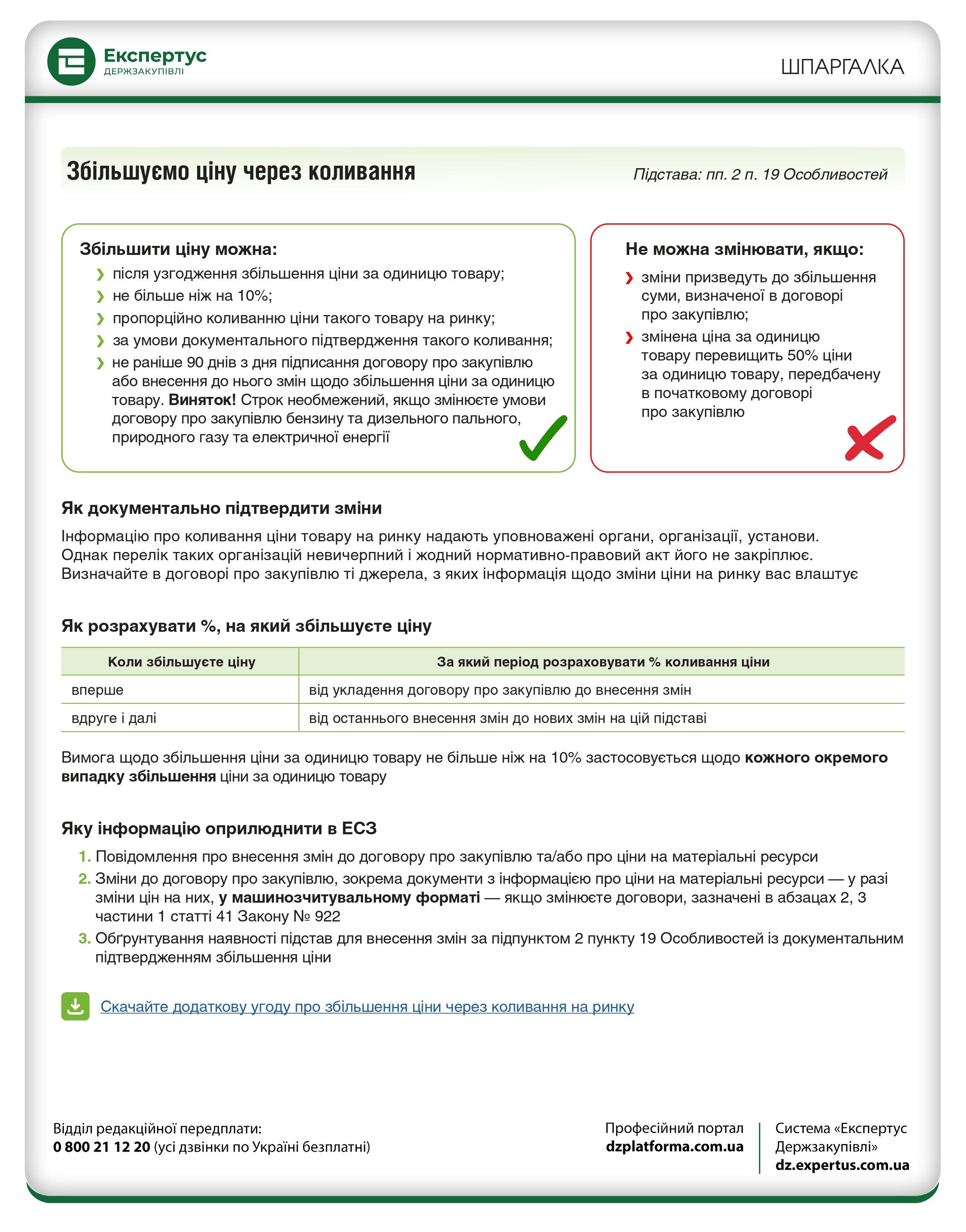 Додаткова угода про збільшення ціни до 10% у разі коливання ціни на ринку