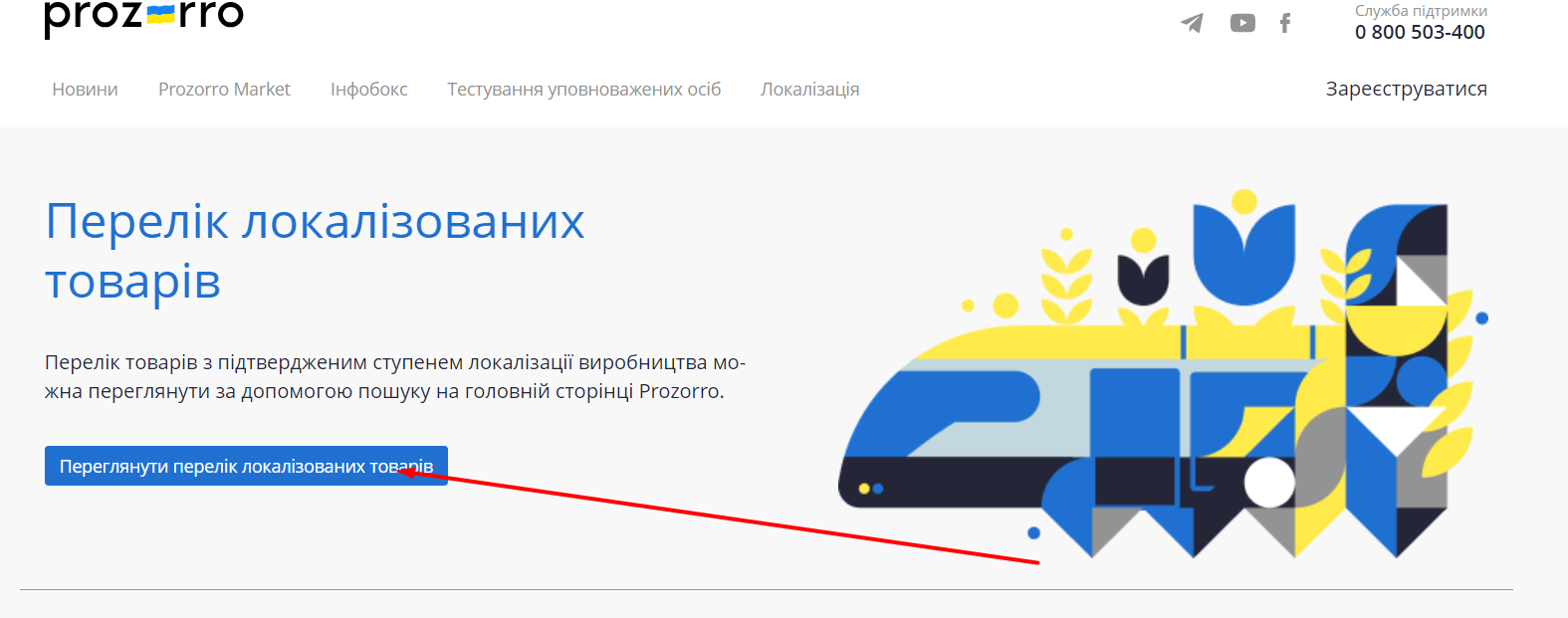 На вебпорталі Уповноваженого органу є окремий розділ «Локалізація», де замовники можуть в процесі закупівель перевіряти, чи доданий до переліку товар як предмет закупівлі, що пропонує учасник (рис).