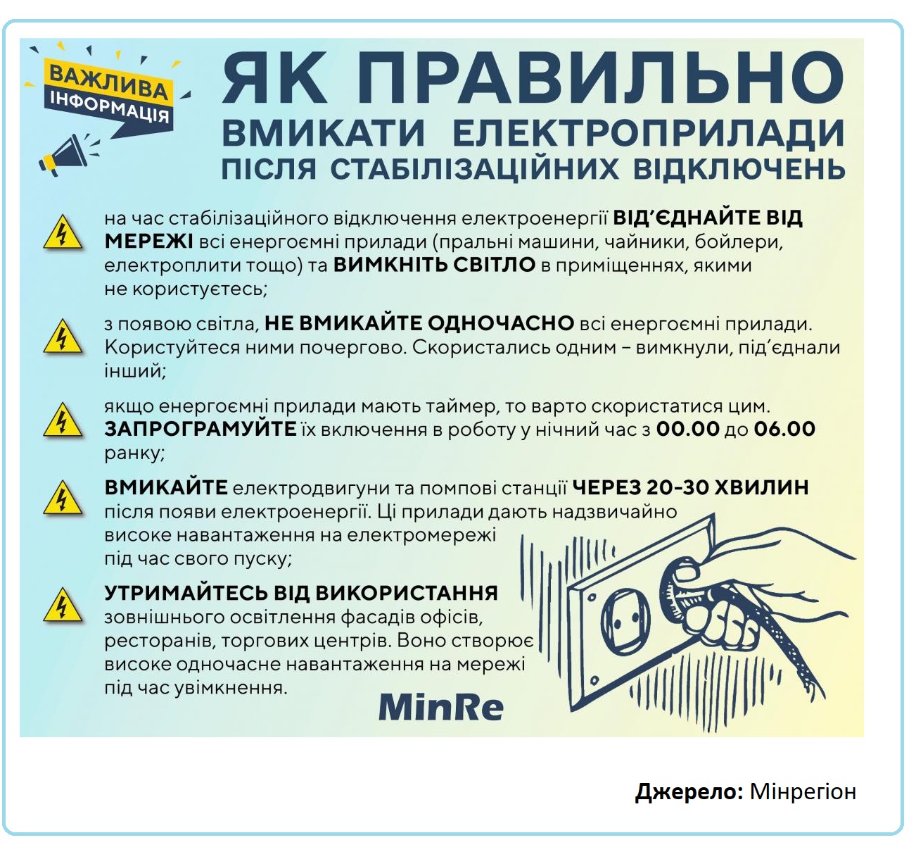 Як правильно вмикати електроприлади після відключень