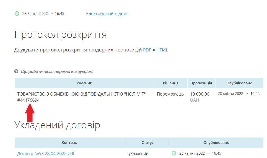 Відкрилися найсвіжіші закупівлі цукру. Зайдіть в кожну закупівлю і подивіться постачальника. Наприклад, ось цього, що на рис. 2.