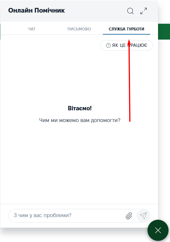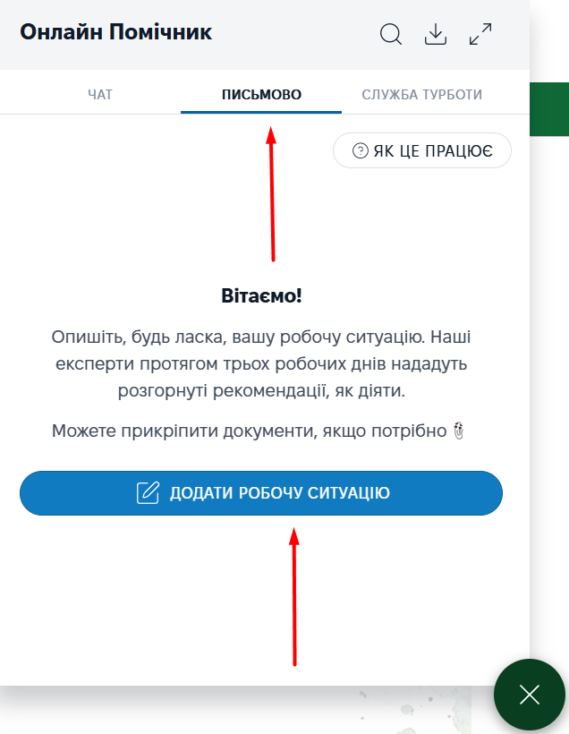 - перейдіть у розділ «Письмово» у віджеті Онлайн-помічника;
