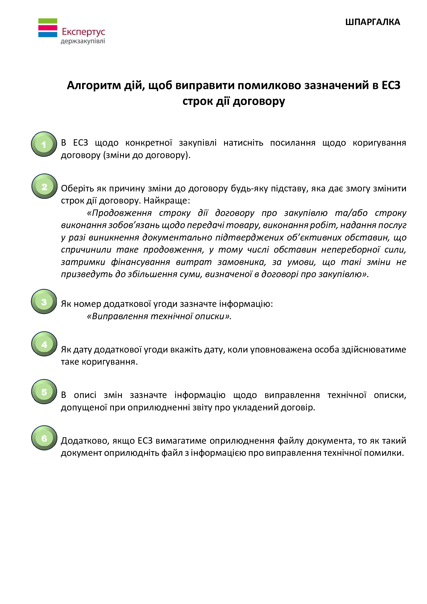 Алгоритм дій, щоб виправити помилково зазначений в ЕСЗ строк дії договору