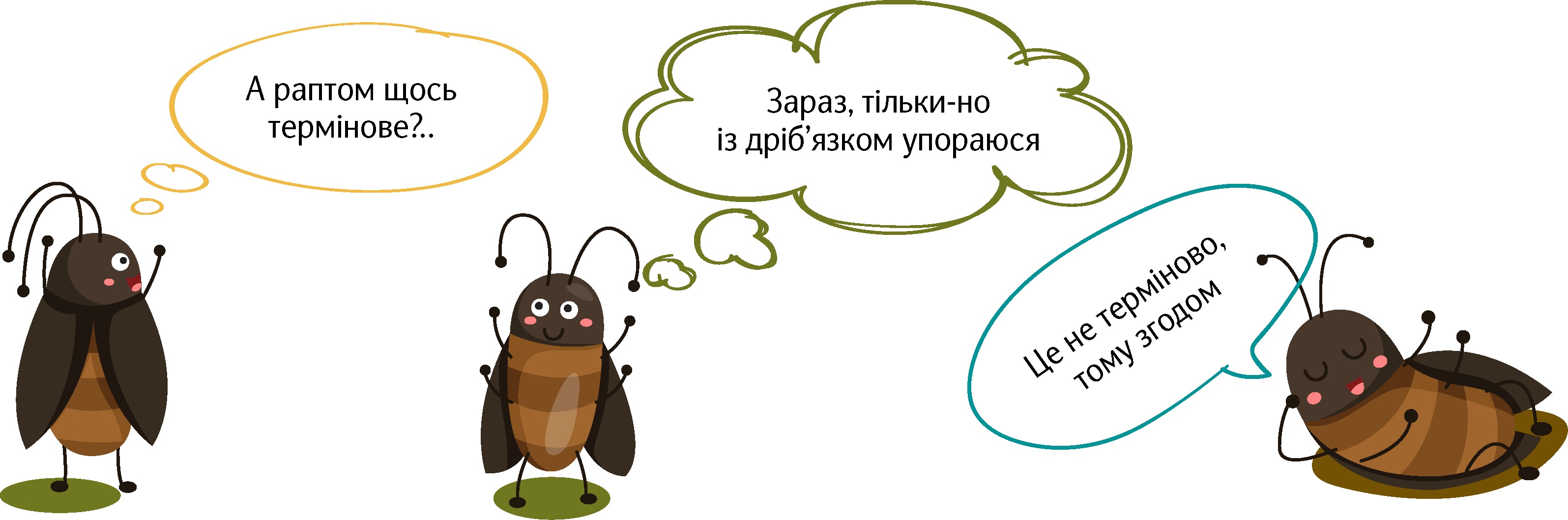 Перший тарган нашіптує: «А раптом там щось термінове?» Зрештою ви приходите на роботу і складаєте список справ на сьогодні. Але директор дає нове завдання. Воно здається пріоритетним, ви хапаєтеся за нього. За пів години відволікаєтеся на повідомлення у соцмережі, потім бачите у пошті нового листа. Ігнорувати не можна — раптом що...