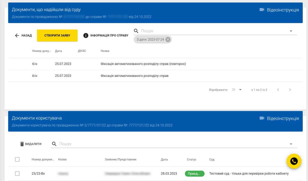 Щоб переглянути справу, слід натиснути на неї. Вказане вікно поділяється на дві частини: «Документи, що надійшли від суду...