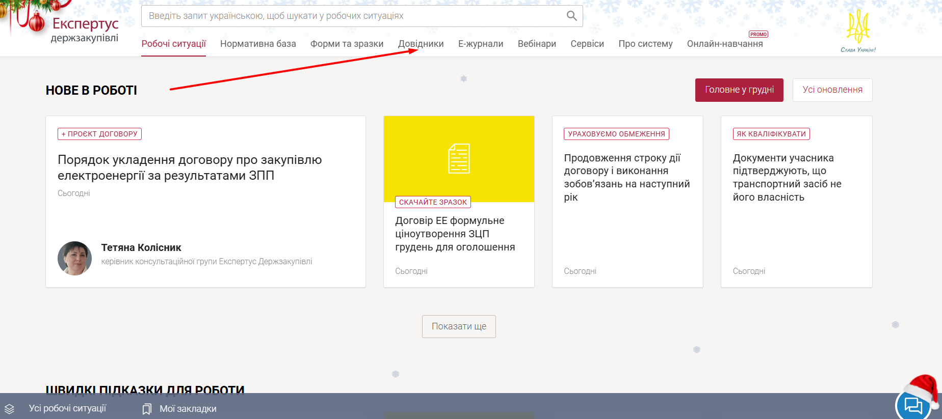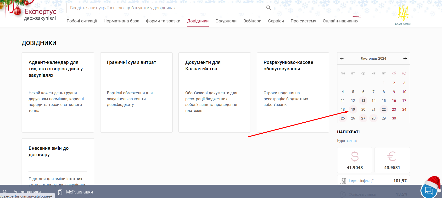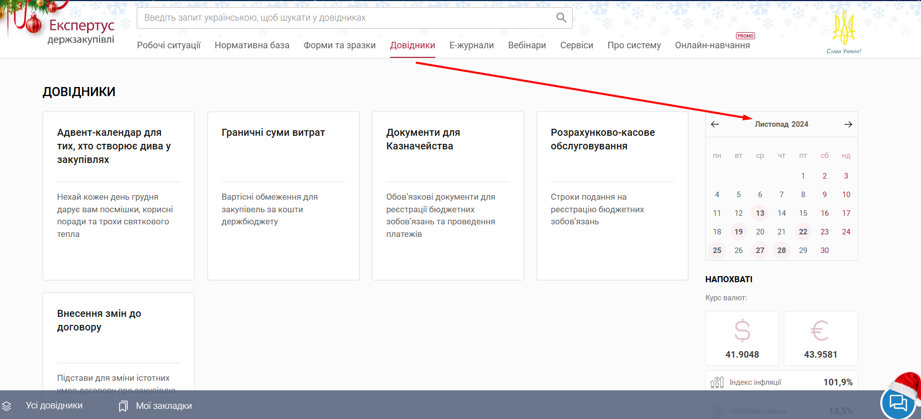 Після переходу в розділ «Довідники» зверніть увагу на правий бік сторінки — саме там розташований календар.