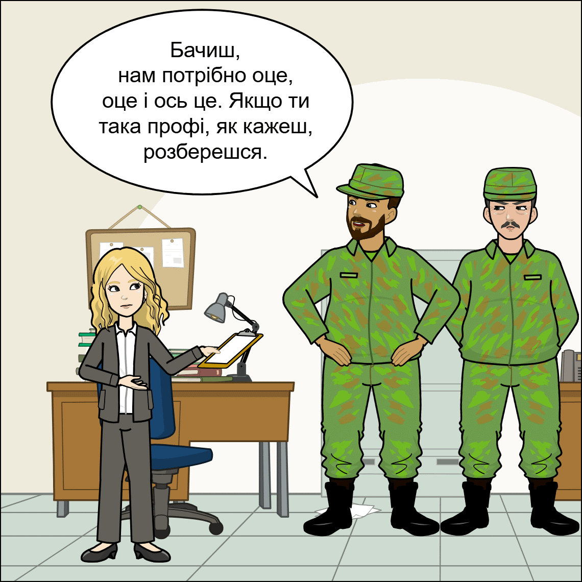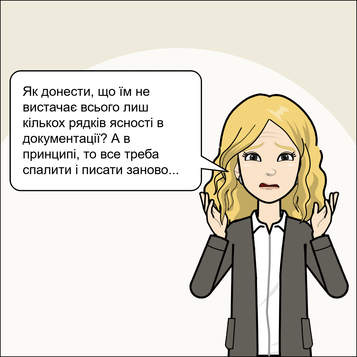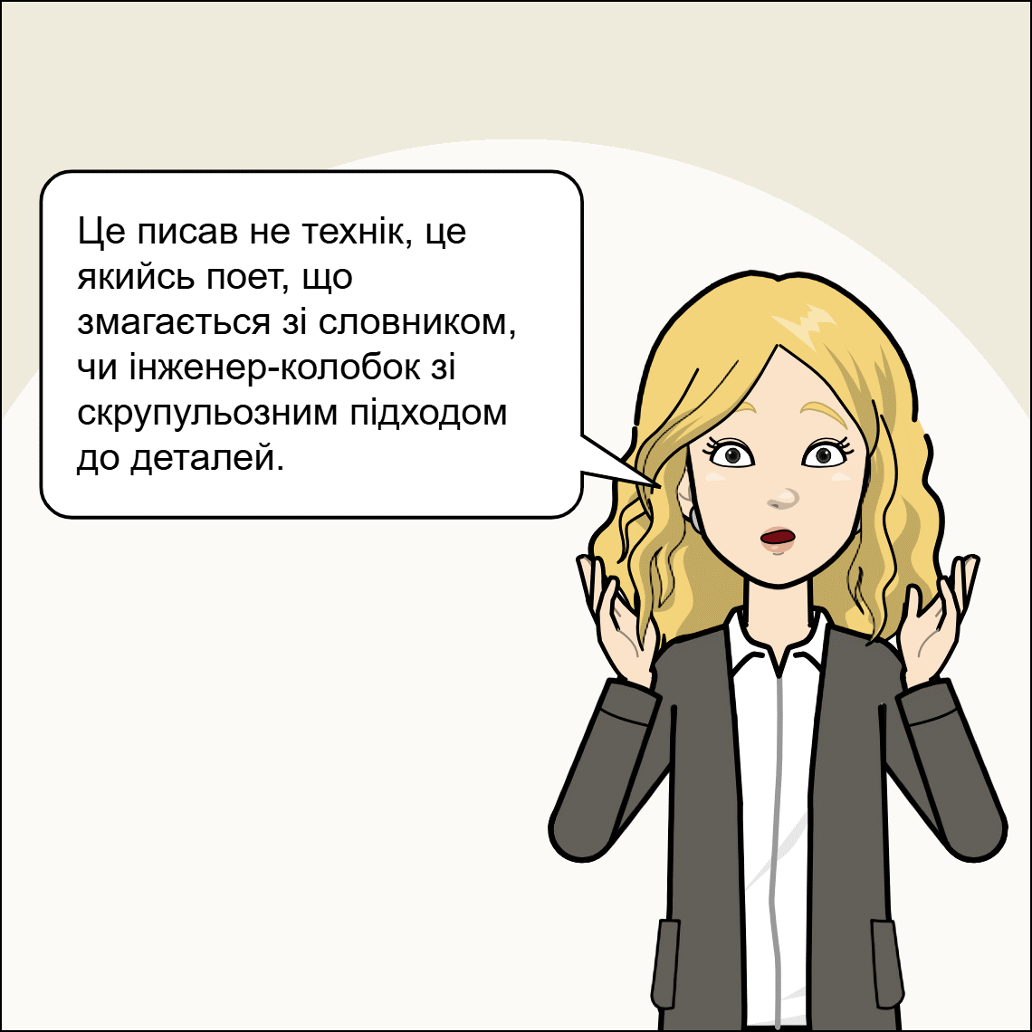 Читає Олена техвимоги раз — нічого не розуміє. Читає вдруге — знову щось не те. Текст виглядає, як комбінація шифрів і таємних кодів.