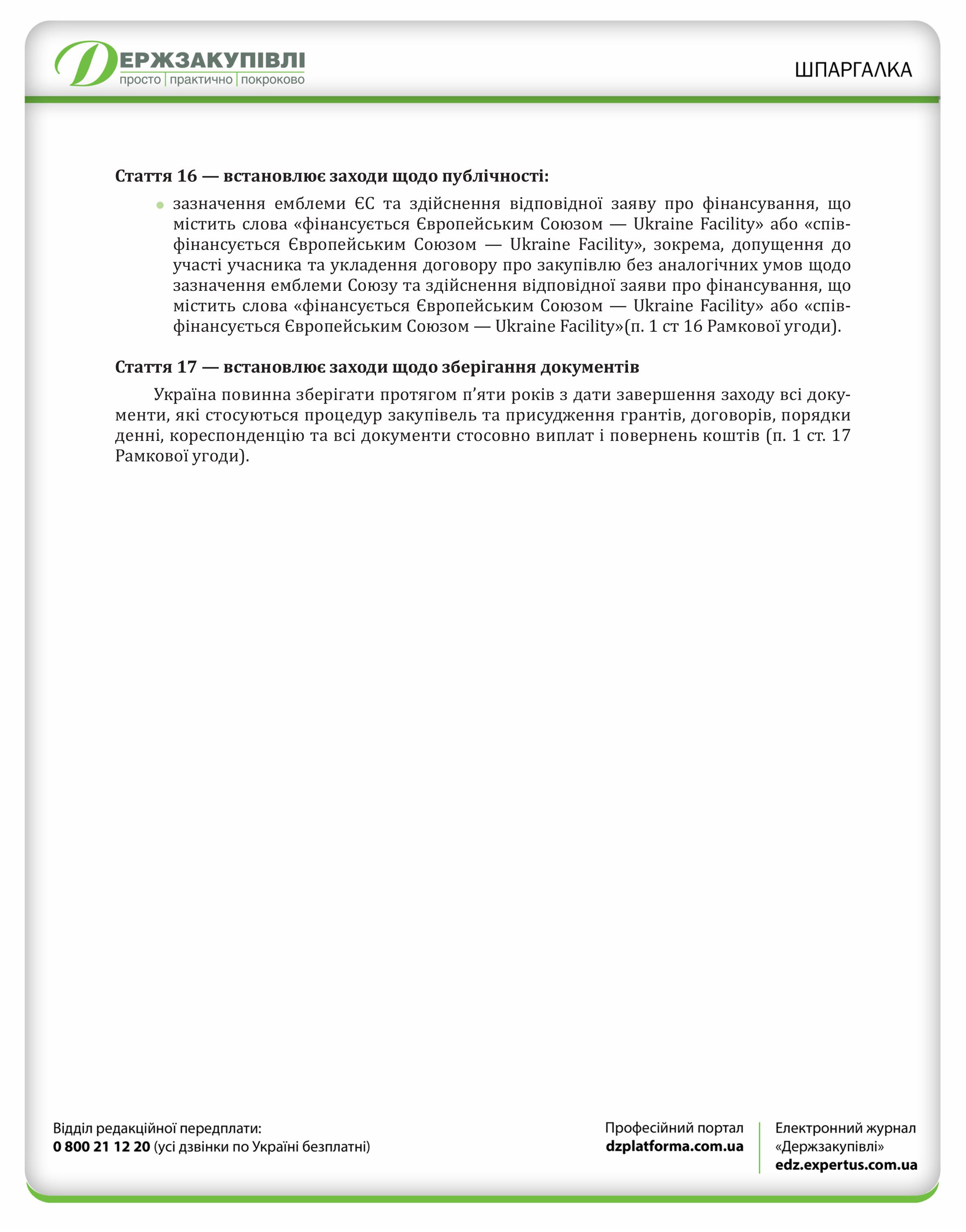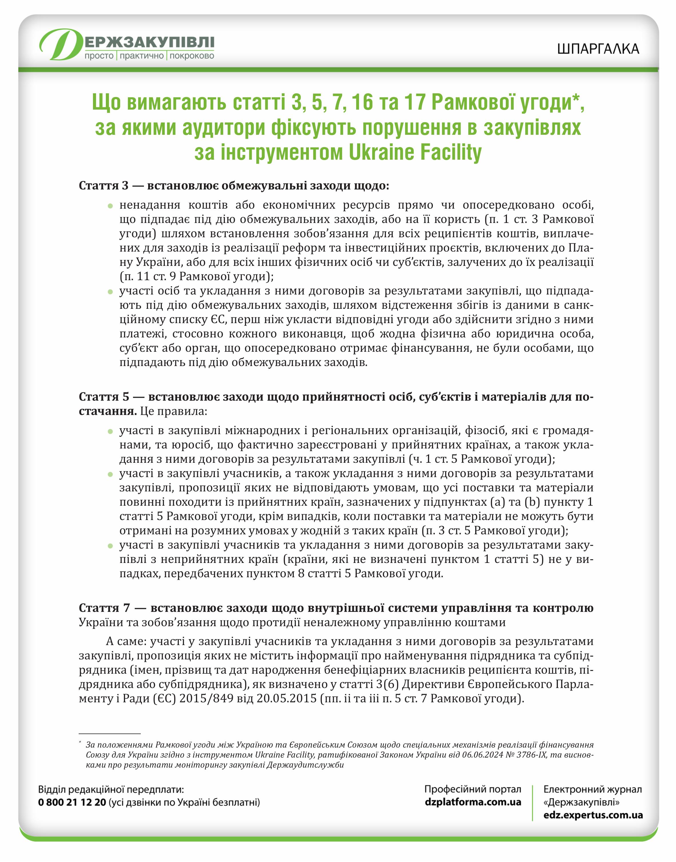Що вимагають статті Рамкової угоди, за якими аудитори фіксують порушення в закупівлях за інструментом Ukraine Facility