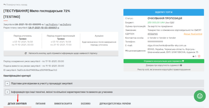 Крок 1. Для скасування закупівлі перейдіть до закупівлі в розділ «Деталі закупівлі» (рис. 1).