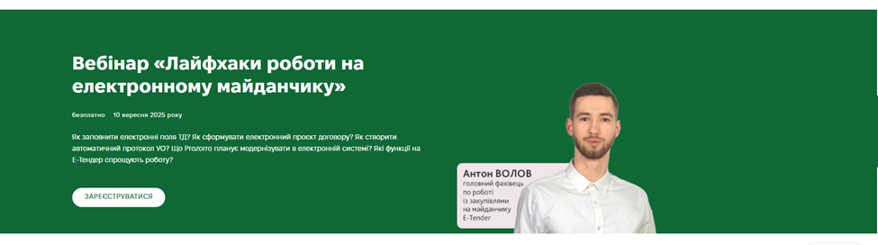Завдяки стартовій сторінці Системи ви не проґавите вебінари та заходи від Експертус Держзакупівлі:
