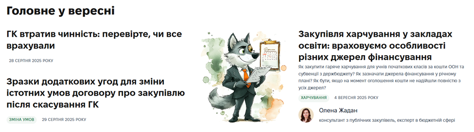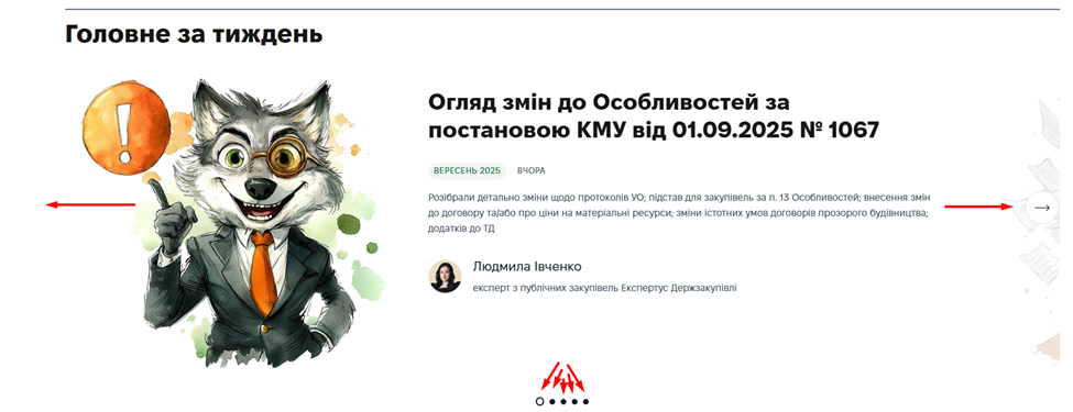 - тематичні блоки із консультаціями на важливу для закупівельника тему;