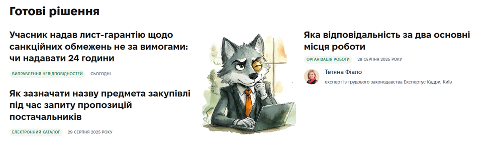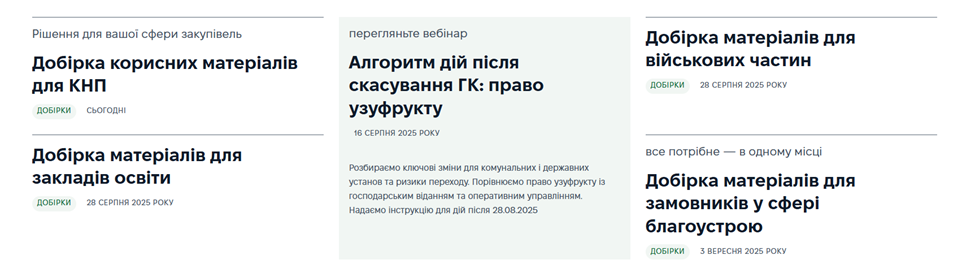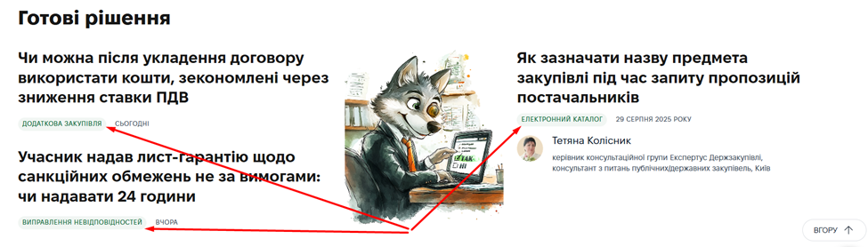 Також регулярно оновлюємо наступні блоки з рішеннями закупівельних ситуацій: