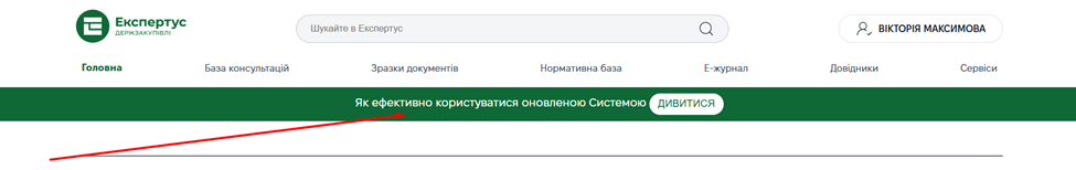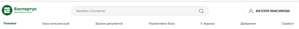 На будь-якій сторінці Експертус Держзакупівлі вгорі ви бачитимете: